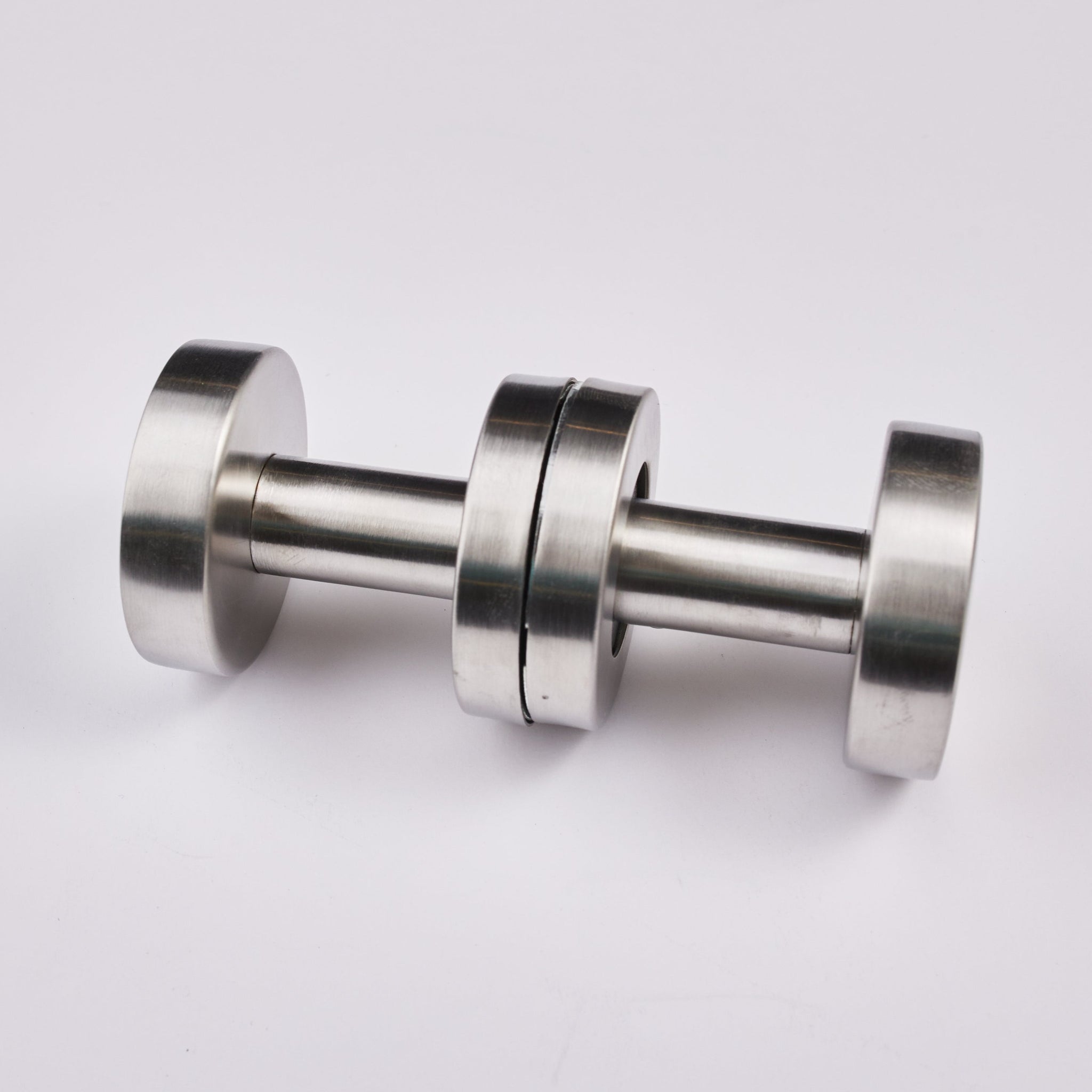 A sleek, round stainless steel knob perfect for modern doors, offering durability with a clean, minimal look.